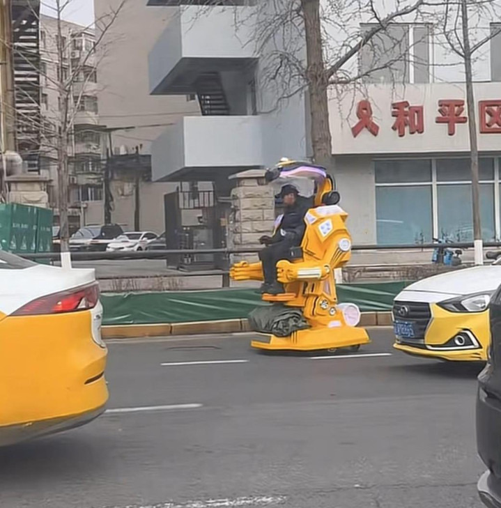 杜先生说道:“当时我正在等红灯,看见前面有一个大机器人在走道,后来他一转身才发现是一个骑着机甲战车的大爷,在马路上‘溜达’呢。”
