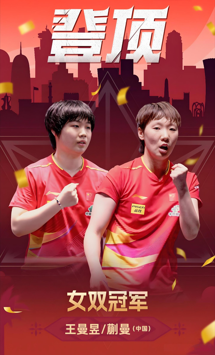 2025年多哈世乒赛,蒯曼搭档王曼昱获得女双冠军。2025年WTT中国大满贯,蒯曼与王曼昱搭档,又获得女双冠军。